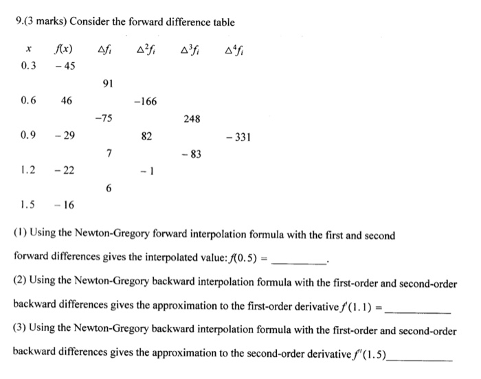 9 3 Marks Consider The Forward Difference Table Chegg Com