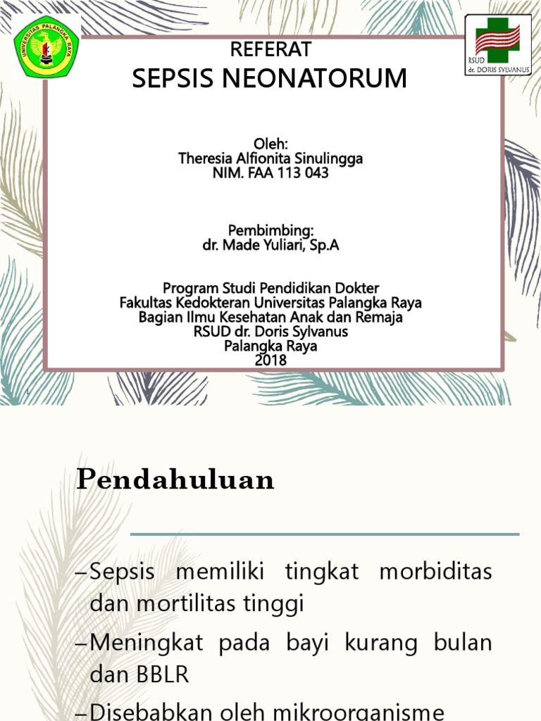 PPT Referat Sepsis - Free download as Powerpoint Presentation ppt pptx PDF File pdf Text File txt or view presentation slides online. Infection in the first four weeks of life. Onset is most rapid in premature neonates.